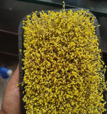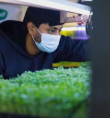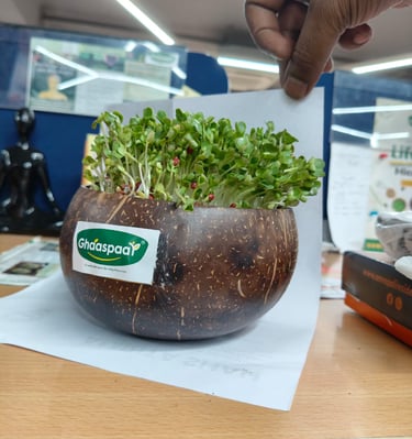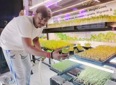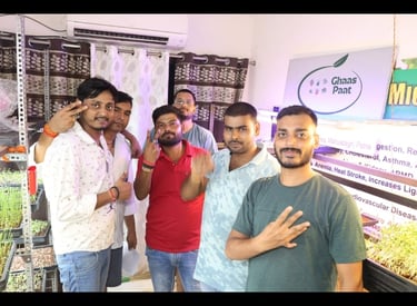 Our mission at Ghaaspaat Farms is to make nutrition accessible to all by promoting healthy living through fresh, nutrient-rich microgreens. We combine sustainable, soil-less farming with modern technology to deliver fresh, pesticide-free microgreens straight to homes and communities. We are dedicated to empowering rural youth, women entrepreneurs, and farmers through training and microgreen cultivation programs. By partnering with government initiatives, we aim to improve public health, support sustainable agriculture, and build a self-reliant India—one microgreen at a time.